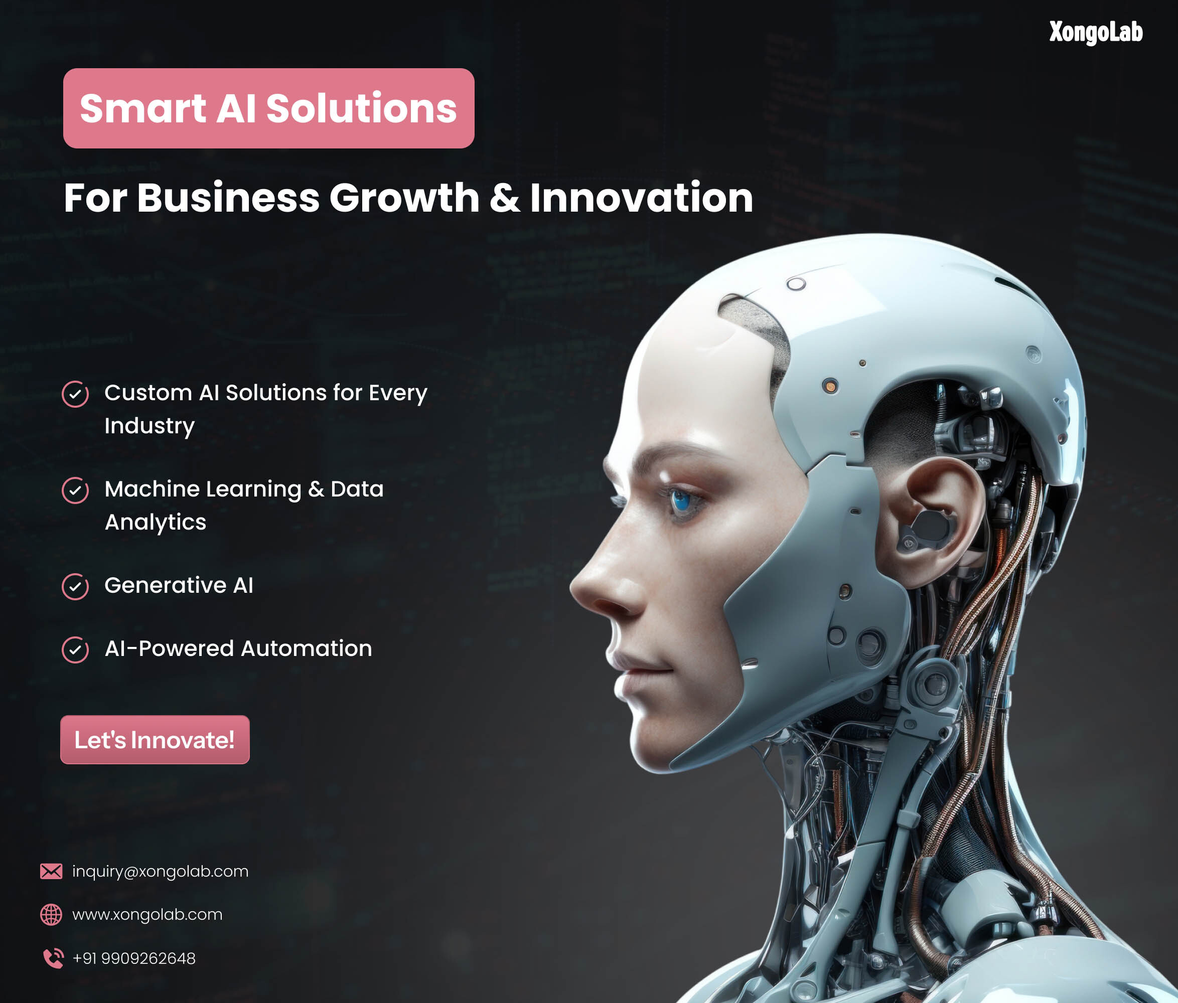 XongoLab Technologies is a premier AI development company specializing in custom AI solutions, generative AI, and AI agent development to build intelligent, scalable, and high-performance applications. Our AI solutions help businesses automate processes, generate content, enhance decision-making, and deliver seamless, personalized user experiences. From startups to enterprises, we empower businesses to harness the latest AI technologies for innovation, efficiency, and growth. Contact us today to transform your business with next-generation AI solutions.