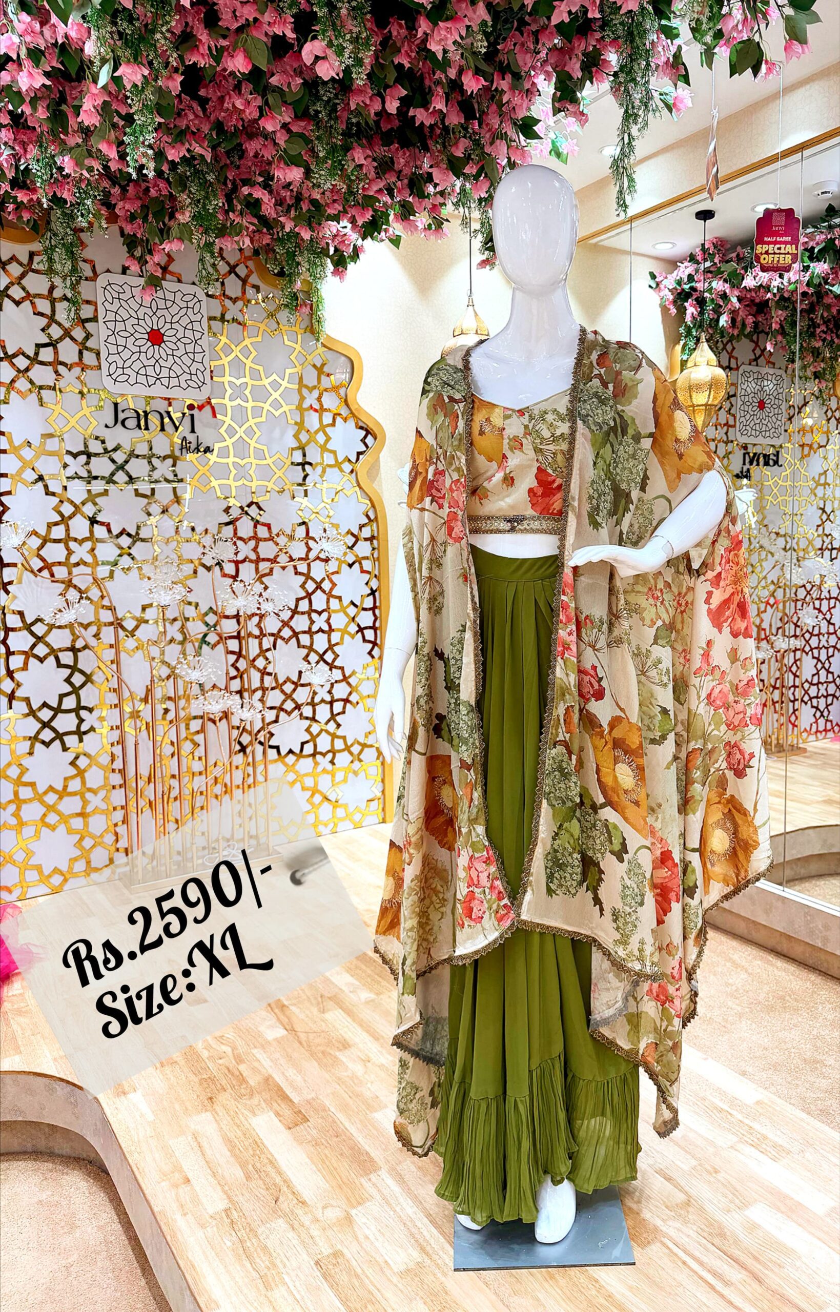 Discover the epitome of elegance at Janvi Aika Traditional Party Wears, your premier women's clothing store located in the vibrant Ramraj Nagar, Tiruppur. Nestled near The Chennai Silks and Amman Nagar, our fashion store specializes in exquisite women's apparel, including stunning Crop Tops, Semistitched and Stitched Lehengas, Chudidaars, Long Gowns, and Shararas. Elevate your style with our Readymade Sarees and Blouses, Kurtis, and especially our Bridal Lehengas. Perfect for all occasions, our collection captures the essence of traditional charm and contemporary fashion. Visit us today for an unforgettable dress shop for women experience and enjoy our exclusive women dresses sale and ladies dresses sale!