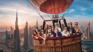 The Private Desert Safari is created for the solo traveler who prefers privacy, comfort, and authentic Arabian experiences. Included in this extravagant tour are private 4x4 transfers, heart-thumping dune bashing, sandboarding, quad biking, and perhaps a camel ride across the golden dunes. Upon arrival, guests are treated to traditional dates, Arabic coffee, and a falcon show in the private Bedouin-style camp. When the evening sets in, there are live performances of Tanoura and belly dance, followed by a sumptuous BBQ dinner under the starry skies. With a trifecta of adventure, culture, and luxury, the Hot Air Balloon in Dubai provides for an experience so stunning, it will be remembered forever.