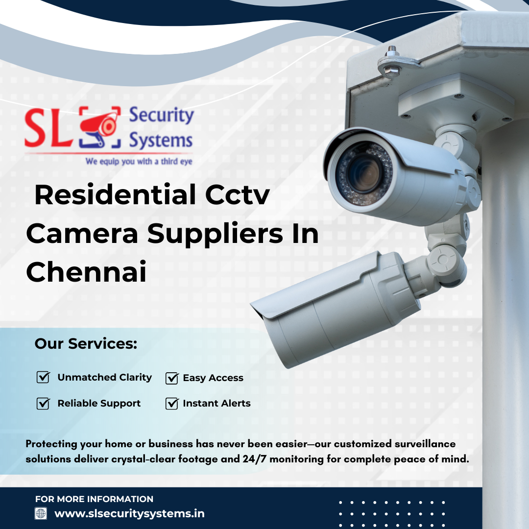 Looking for trusted Residential CCTV Camera Suppliers in Chennai? We provide high-quality CCTV cameras designed to keep your home safe and secure. Our range includes modern, easy-to-use systems with clear video quality for complete protection. With expert support and affordable prices, we make home security simple and reliable. Choose us for the CCTV camera solutions in Chennai. Vist our website : www.slsecuritysystems.in or call me +91 8778204238